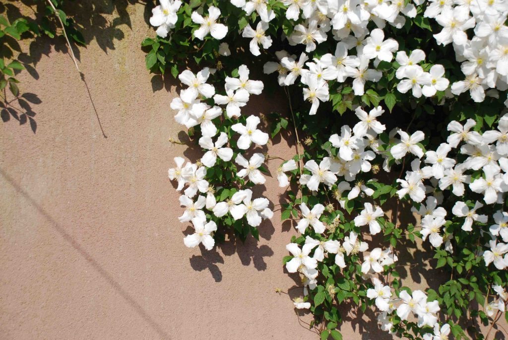 Clematis are the most popular of woody climbers. They are varied in size, shape and colour and adaptable too. There is a clematis for almost every part of the garden though they are especially popular for clothing trellis against house walls and for patio pots. Curiously, these are not the best places for the majority of clematis and, due to that, questions about clematis dominate my inbox of garden problems, especially at this time of year. The large-flowered clematis, blooming in May and June, are often described as liking their heads in the sun and their feet in the shade. If they are short of water when in growth the lower leaves turn brown and the remaining leaves get mildew, covering them with white powder at first but later turning the remaining leaves brown. Mildew is encouraged by dryness at the roots. Mulching the roots or the traditional ‘putting a paving slab over the roots’ can help but neither compensate for the mistake of planting a clematis at the foot of a sunny house wall in a narrow bed that rarely gets rain.