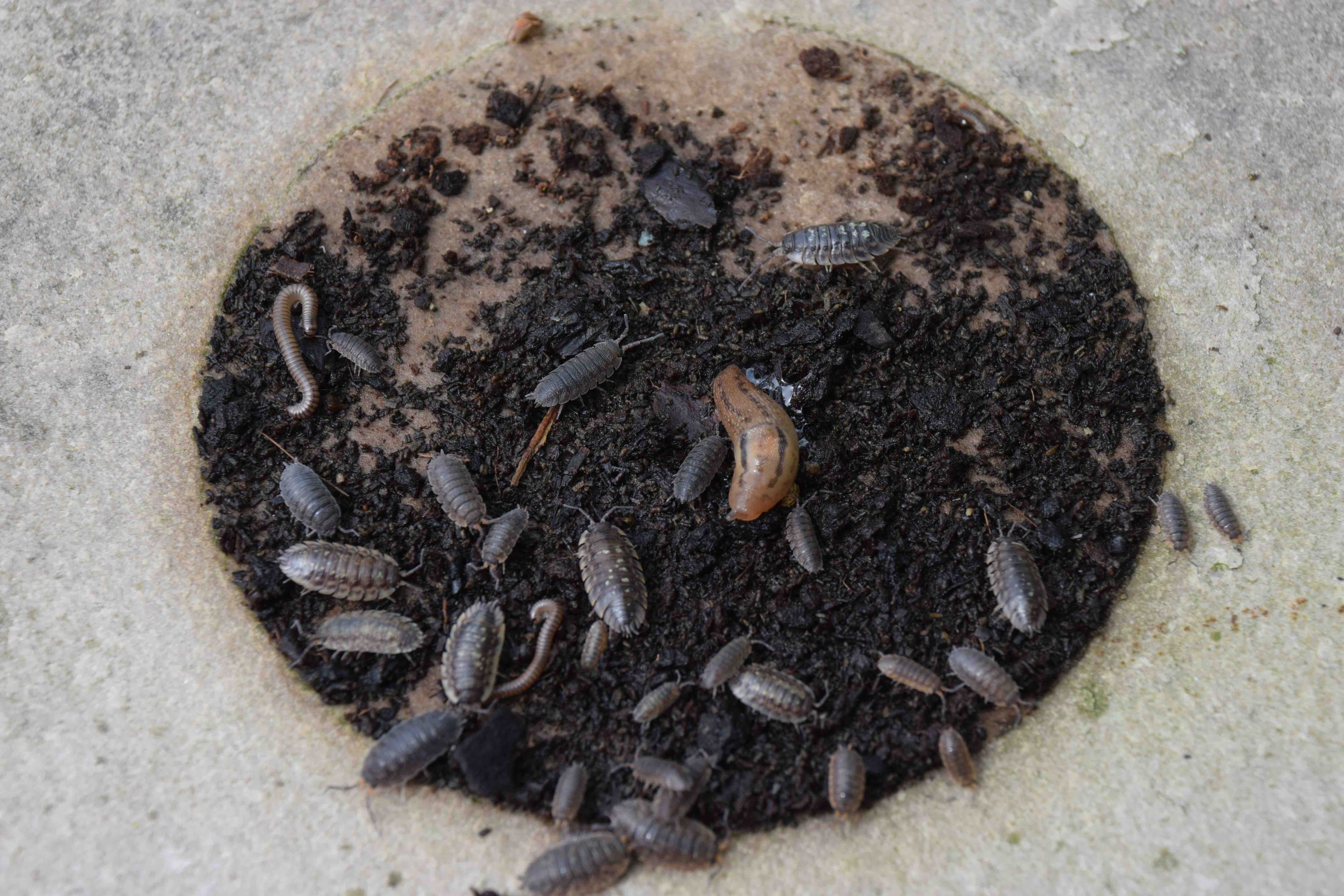 Having a bit more time on our hands means we can do a bit of housekeeping on the patio. Sweep up fallen leaves and debris that makes comfy homes for pests. Lift up a pot and you may find a community of pests like these woodlice, millipedes and slugs.