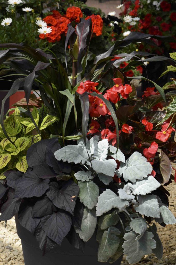 These are all plants that we buy in individual pots rather than trays or strips, something that would have been unheard of in the 80s. Many of these new bedding plants do not set seeds and have a neat, compact habit, making care of patio pots easier. But there are still a few things to do apart from watering.