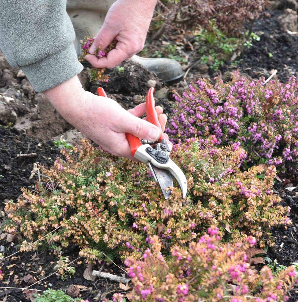 Winter-flowering heathers have bloomed earlier than usual this year and some are ‘going over’. These can be given a light trim, to remove the old stems with dead flowers. This should be done every year to keep plants neat and compact and prevent them becoming dead in the centre.