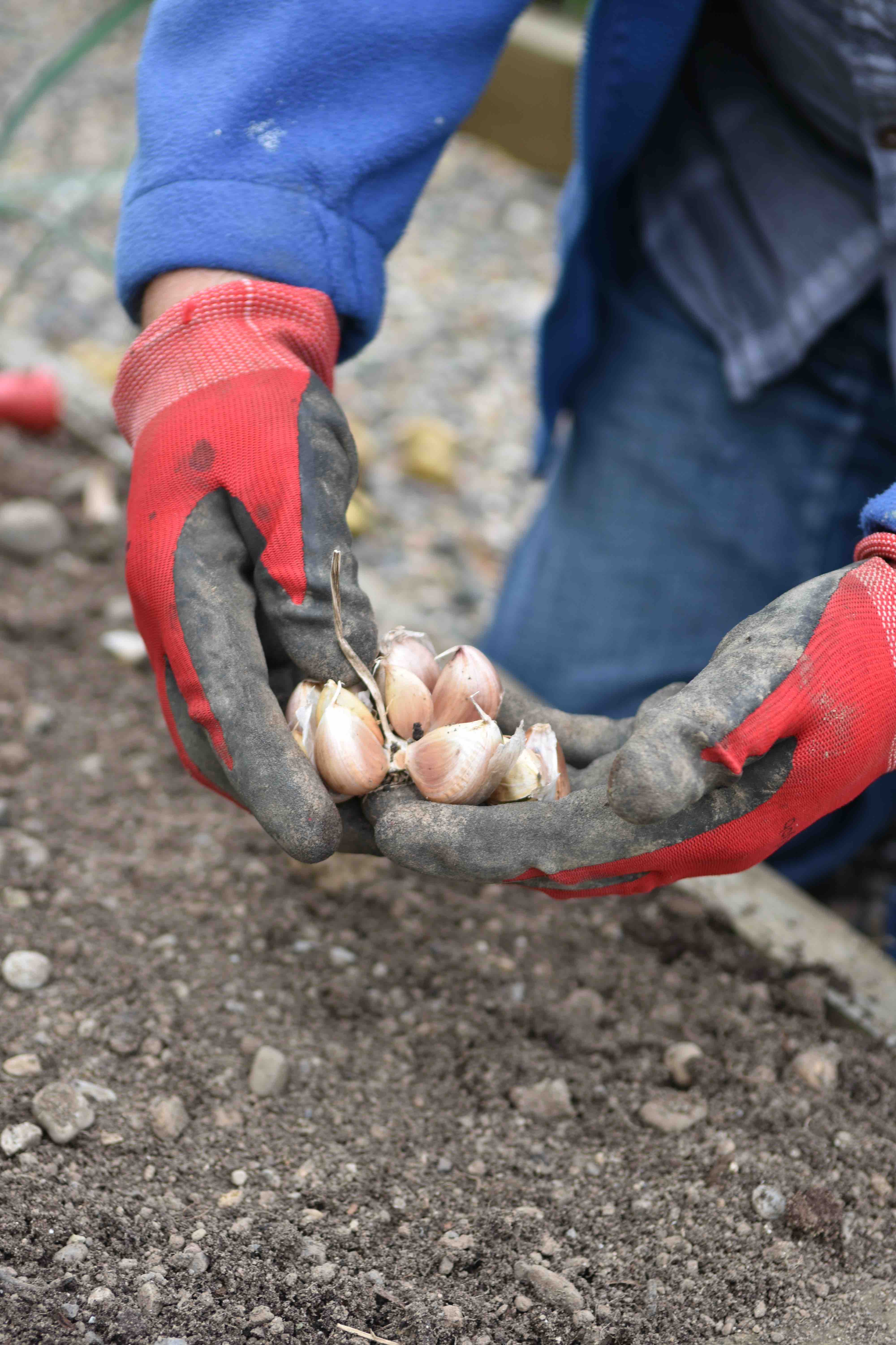 It is easiest to grow it in the ground and, because it prefers well-drained soil, a raised bed is perfect. You can also grow it in pots if you don’t have a garden, when a pot at least 20cm wide and deep and John Innes No 3 compost is best. In theory you can plant the garlic you buy from the supermarket but much of this is grown in China and will be infected with virus, which is not harmful to us but is not good to plant. So it is best to buy garlic bulbs from Nag’s Hall and then, with clean stock, you can even save some each year to plant again.
