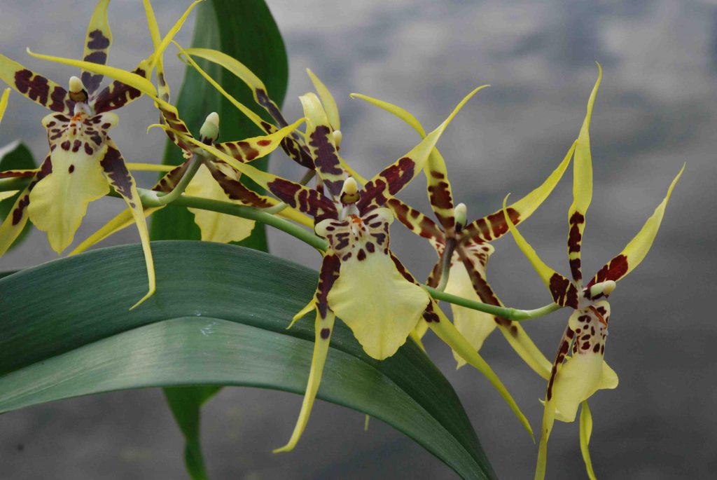 Brassia, or spider orchids, are exotic and often scented, though the perfume of many orchids varies with temperature and time of day. These are easy to keep, if watered properly, and are not difficult to get to flower again.
