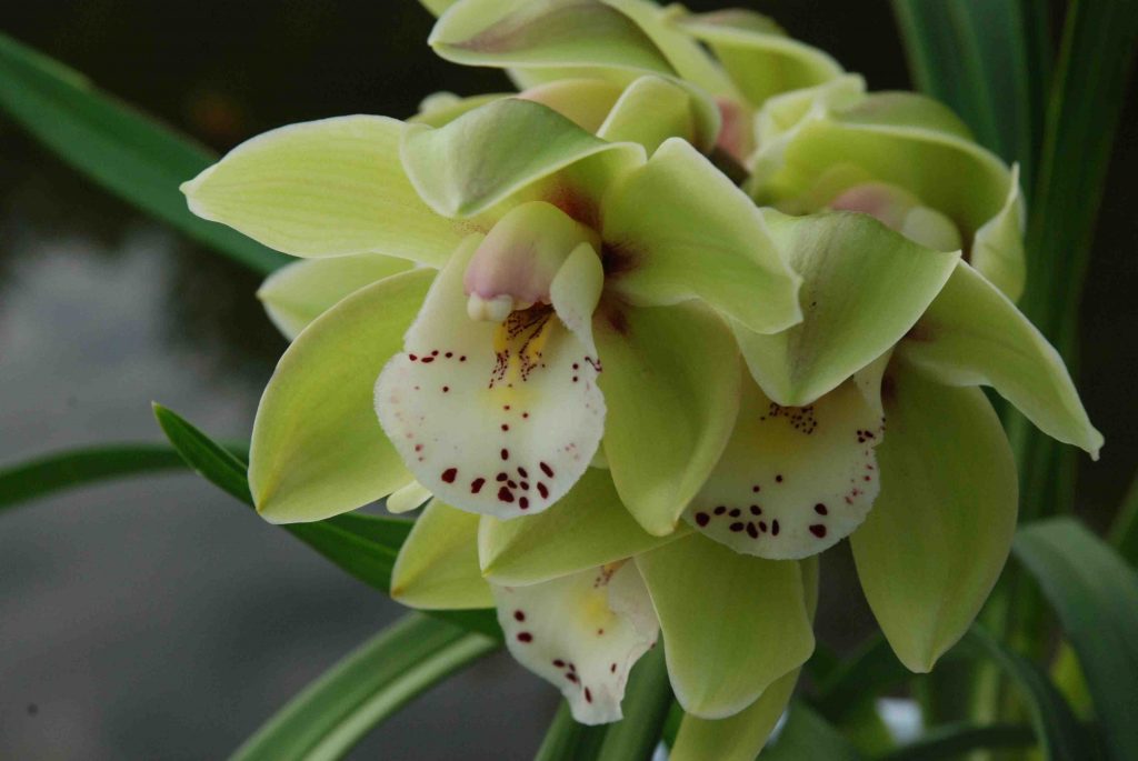 Cymbidiums are the other traditional choice of orchids but these are much larger plants and they have a seasonal flowering, usually in spring but often brought forward to flower for Christmas. These flowers do not last as long as moth orchids usually six to eight weeks at the most, but are very spectacular and in a wide range of colours. These are cool orchids that prefer a bright spot in a room that is 10 -18c. The flowers will last much longer in cool rooms and they are perfect for a sun room or porch. These make new growth in spring and summer and they can even be placed outside, in shade, in summer, but protect them from frost at all times.