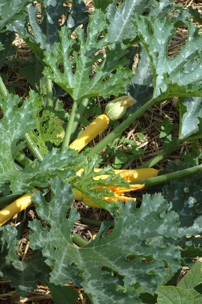 Courgettes These are large, attractive plants and you can get seeds of yellow and round courgettes too. They often fail to set early in the season but as the weather warms they are very productive. Pick the when they are small to keep them producing – don’t let them grow into marrows! They grow well in pots or plant two in a growing bag.