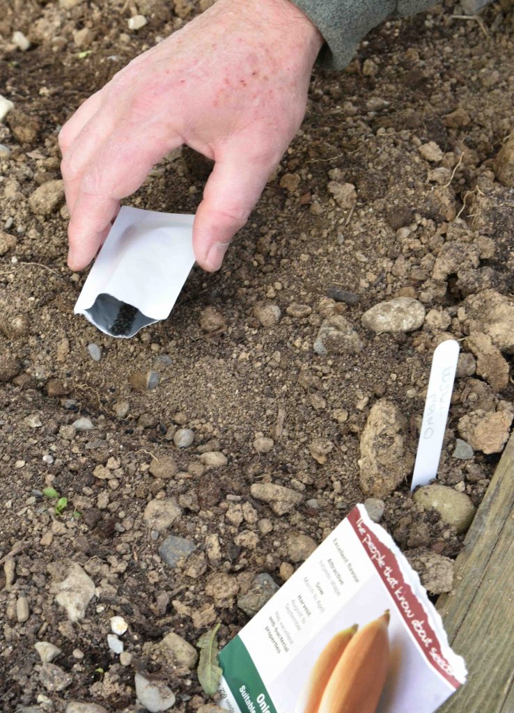 Onion sets are ‘baby’ onions, sown last year, that will make mature onions this year. They are easy to plant – but use a trowel and never push them into the soil because the roots will push against the compacted soil under the set and push themselves out of the ground. Heat-treated sets (the most common) are best because they are less prone to ‘bolt’ but red onions are very prone to bolting – 75% of my red onion sets bolted last summer!