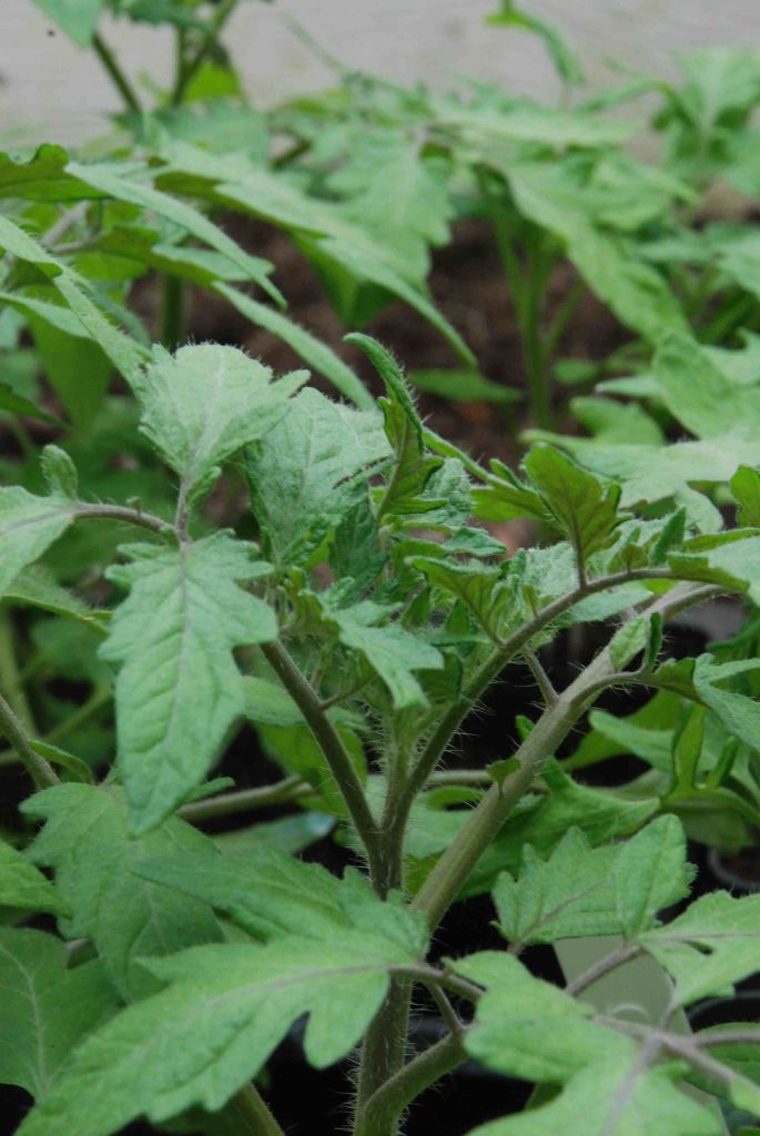 The plants are best planted out when you see the first truss of flower buds in the tip of the plant. Keep them growing sturdily in good light and not too hot, so they don’t get straggly and need support. But tomatoes are very adaptable and even straggly plants will recover if they are not in perfect condition.