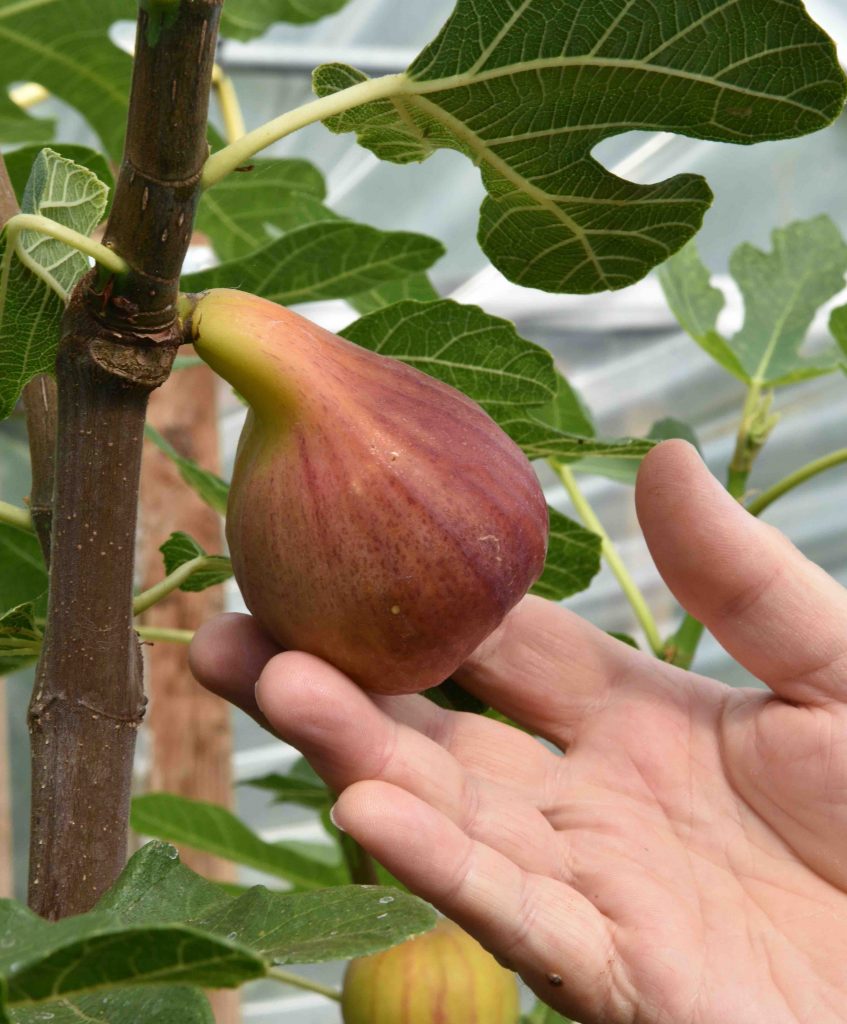The most common fig is ‘Brown Turkey’ although ‘Crystal Ice’ is a good option if you want ornamental foliage. The leaves are very narrowly divided, rather like snow crystals. My plant is ‘Rouge de Bordeaux’ which is supposed to have fruits with good flavour.