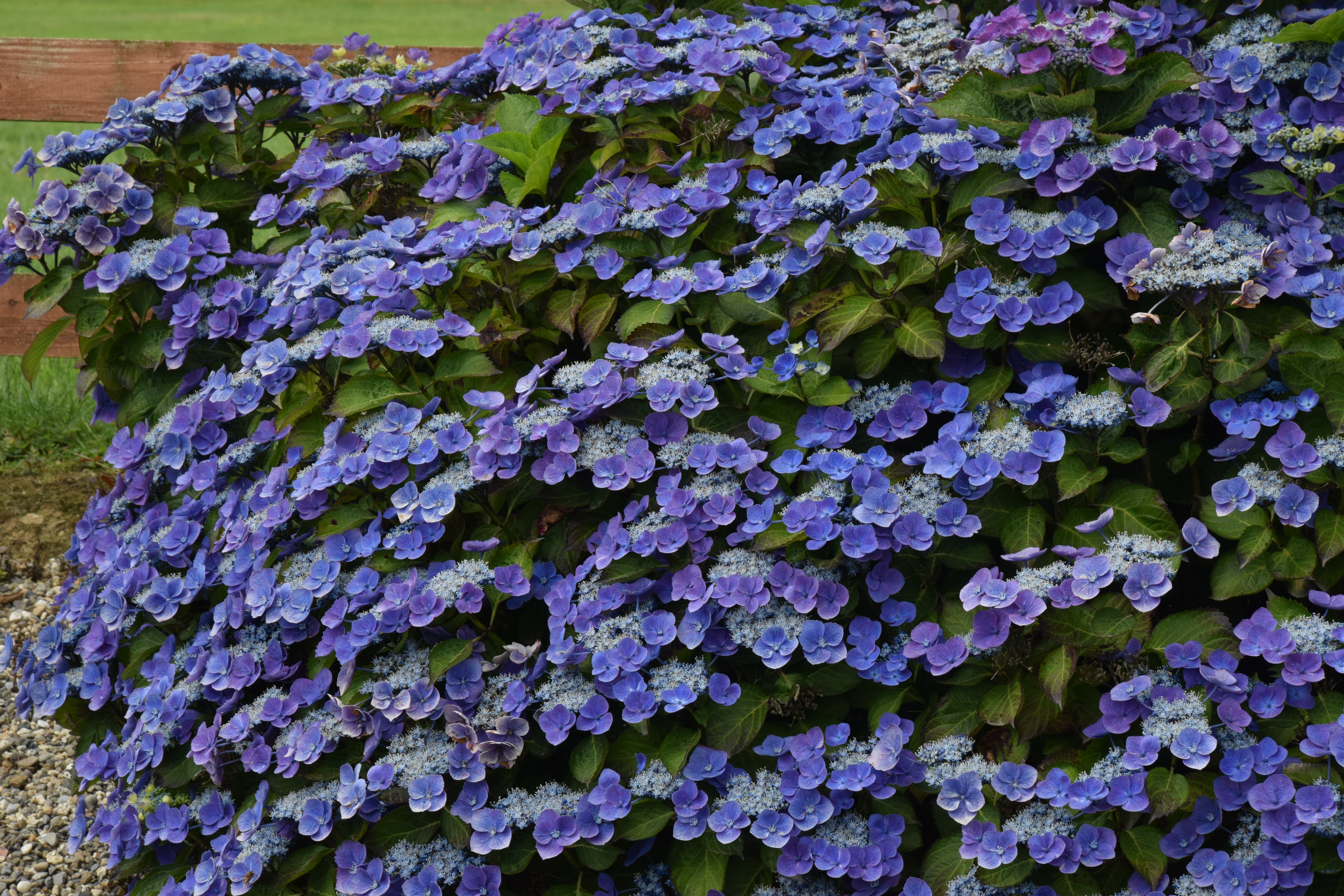 If you buy a blue hydrangea and plant it in alkaline soil the flowers will be pink next year. Often the colour is a mix of the two and lilac or lavender which is usually disliked but I quite like it, though I have to admit that true blues are a wonder!