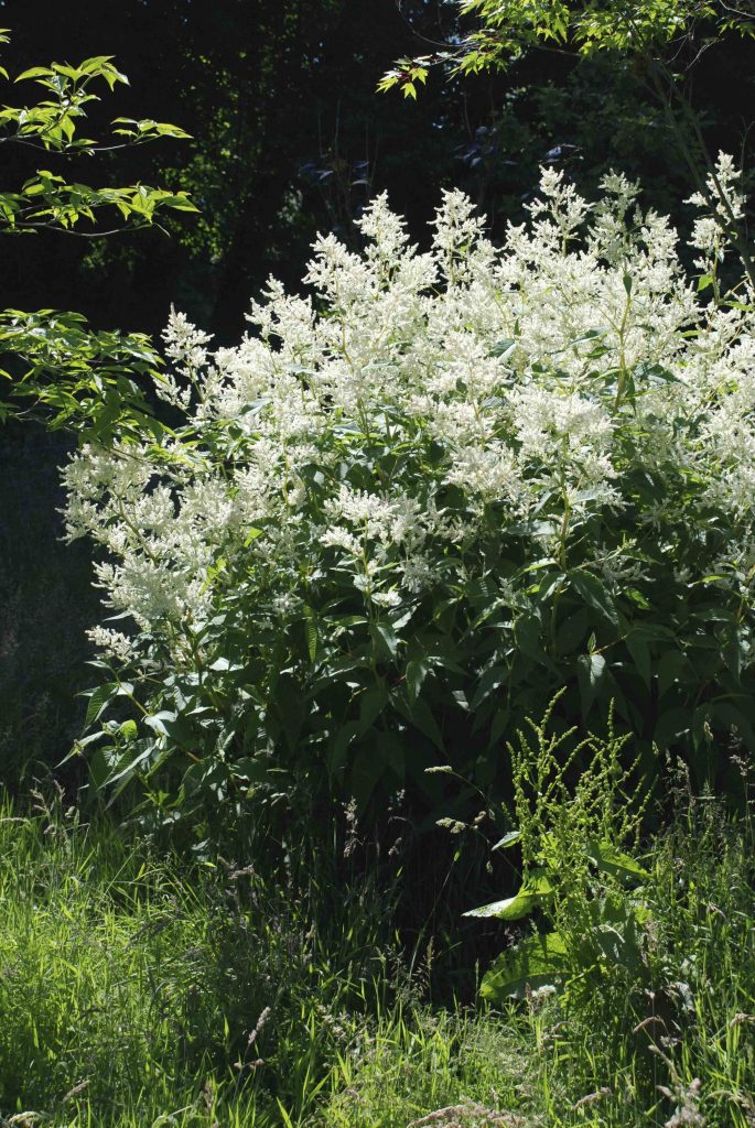 A plant that is still rather uncommon but will surely become more popular is Persicaria polymorpha. It is also known as Persicaria alpina but this is no ‘alpine’! It grows to 2m and is covered in millions of small white flowers in summer. It is too bulky for small gardens but is truly spectacular and it does not spread!