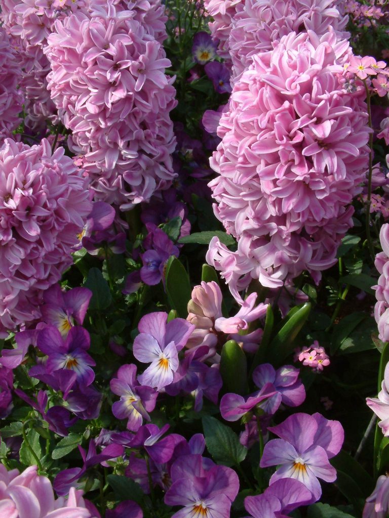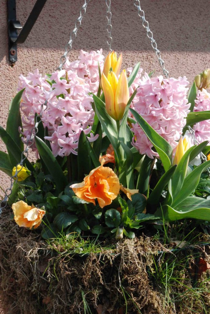 Unlike daffodils and tulips, there is not much variation in flowering time with hyacinths. Most bloom, in the garden, at the end of March and start of April, though those in a sunny spot will flower earlier than some in a pot in a shady spot. But if planting in a pot to bring in the home, it is best to choose one variety for each pot and not plant a mixture, because there will be some variation in flowering time. Although hyacinths smell delightful, they are not pleasant as they ‘go over’ and you don’t want a mix of fresh and old flowers.