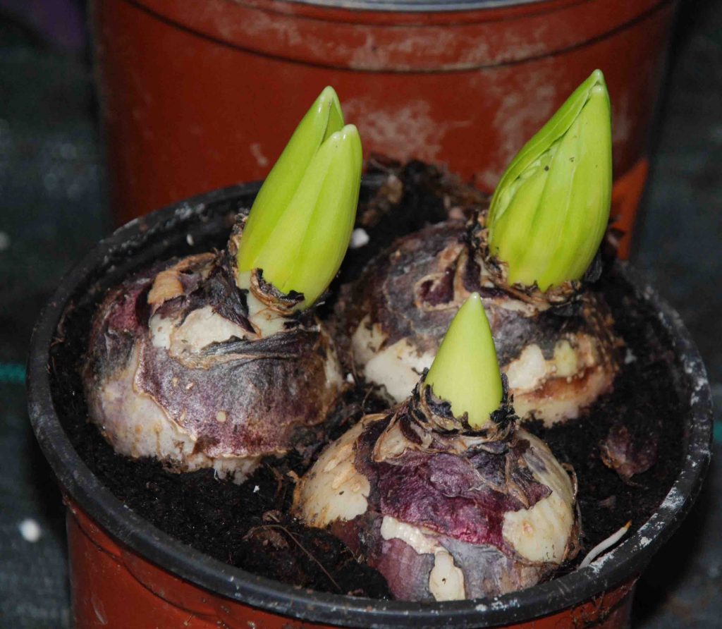 You can still plant some ‘ordinary’ hyacinths in pots for indoors but they will flower in January or February, a month or so before they will bloom in the garden.