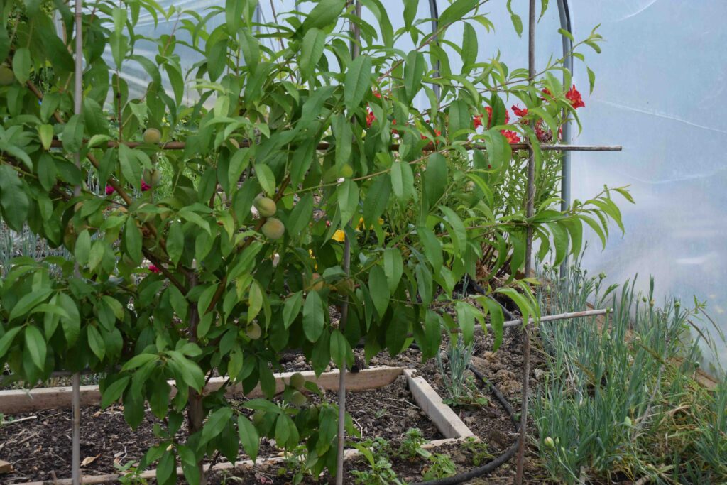 If you do not have room for a full-blown polytunnel you should be able to fit in a mini, plastic greenhouse. These are useful for tomatoes and other summer crops on the patio. On my windy they would not last five minutes but they are perfect for a sheltered patio. They keep plants warm and dry. This can help prevent blight on tomatoes. Peaches are hardy but, in my polytunnel, I can avoid peach leaf curl.