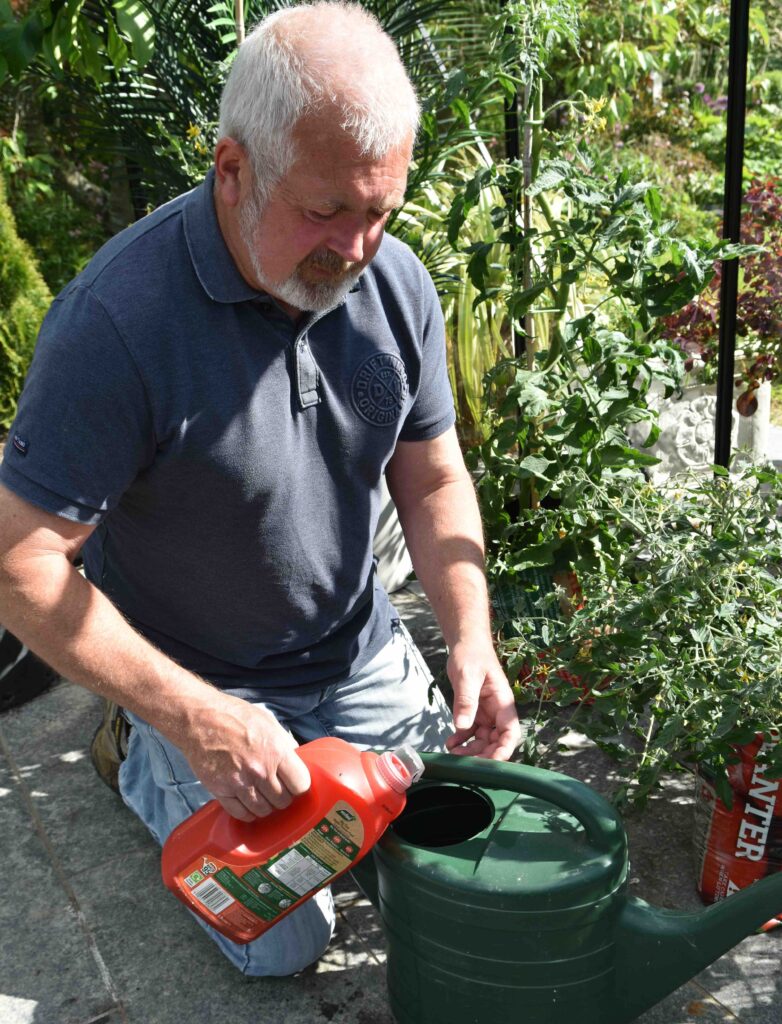 You can grow in garden soil, in polytunnel beds or in pots, growing bags and even hanging baskets. In pots use multipurpose compost. The biggest problem with tomatoes in containers is that they will dry out in summer, causing damage to the fruits. If you grow in pots you MUST water frequently and you will need to feed. And yes, tomato fertiliser is the one to use. If planting in growing bags it is usually best to plant two per bag rather than three. This means they have more root room and they will not dry out as quickly on a hot summer’s day – yes they will come eventually! .
