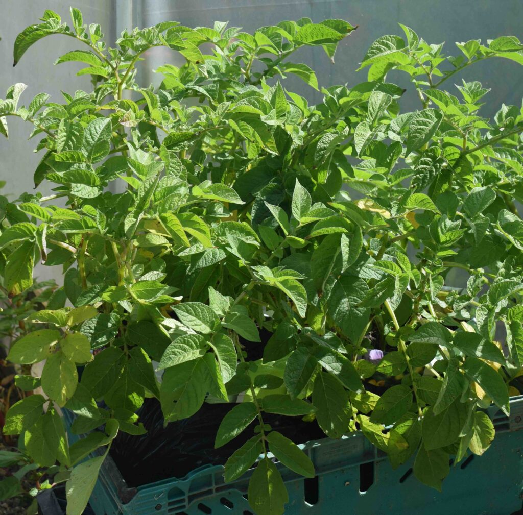 I always grow a few potatoes but planted more than usual this year what with dire warnings about shortages because of poor weather and problems for farmers planting them. I always grow some in bags and then the bulk in the raised beds. Growing in bags has some advantages. I can plant them and keep them in the polytunnel at first so they get a head start and will not be affected by frost. If you are careful you can rummage around and harvest a few spuds without lifting the whole plant. And importantly, since I have to prepare them to eat, they can be harvested nice and clean and perfectly shaped. Of course there is the cost of compost to consider but that is used to improve the soil on borders and for planting shrubs or for my autumn and winter pots on the patio.