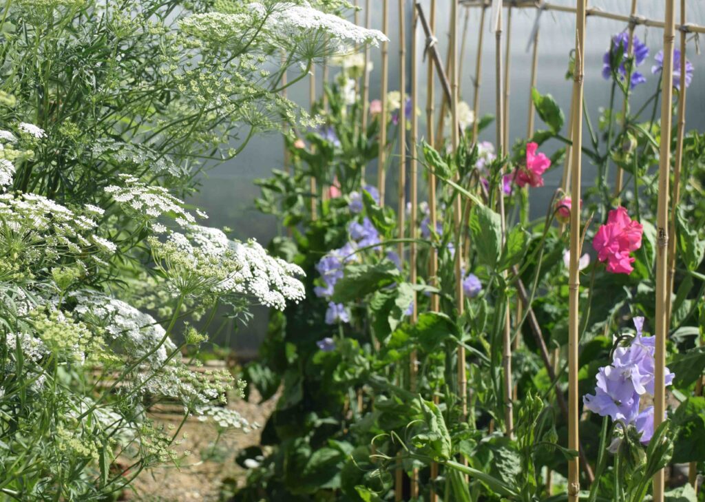 Last year I decided to sell cut flowers at the gate for charity and it worked out well. I started again this spring with daffodils and have been ‘bunching up’ flowers all summer. The cool weather has suited the sweet peas and they have been fantastic with long stems and heavily perfumed blooms. I also grew a row of Ammi majus for cutting. Though it is an annual it is best grown as a biennial and I sowed it in September and they started to bloom in June, reaching 2m high and have been useful for cutting and adding to the sweet peas. I am sure people think I am raiding the hedges for cow parsley but it has been a useful filler. I will sow again in autumn along with my sweet peas that I sow in October.
