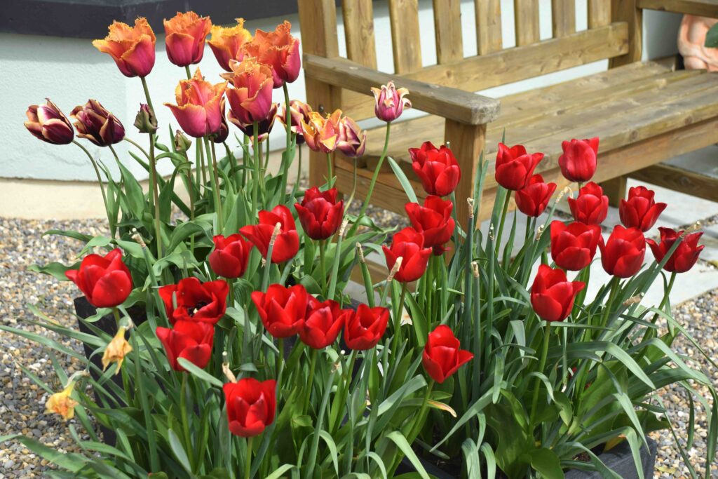 You can put some tulips in borders with small shrubs and herbaceous plants too, providing some needed colour in spring.
