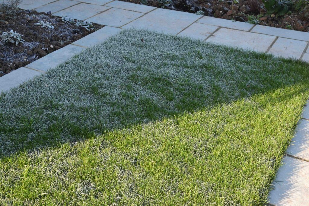 When you walk on the frosted grass you break the grass blades and they will die, leaving black footprints and dead patches that will take a while to recover. We should not have much snow yet but it is best to keep off lawns when they are covered in snow too. When you walk on it, or make a snowman, you compress the snow into ice that takes longer to thaw and this will leave yellow patches.