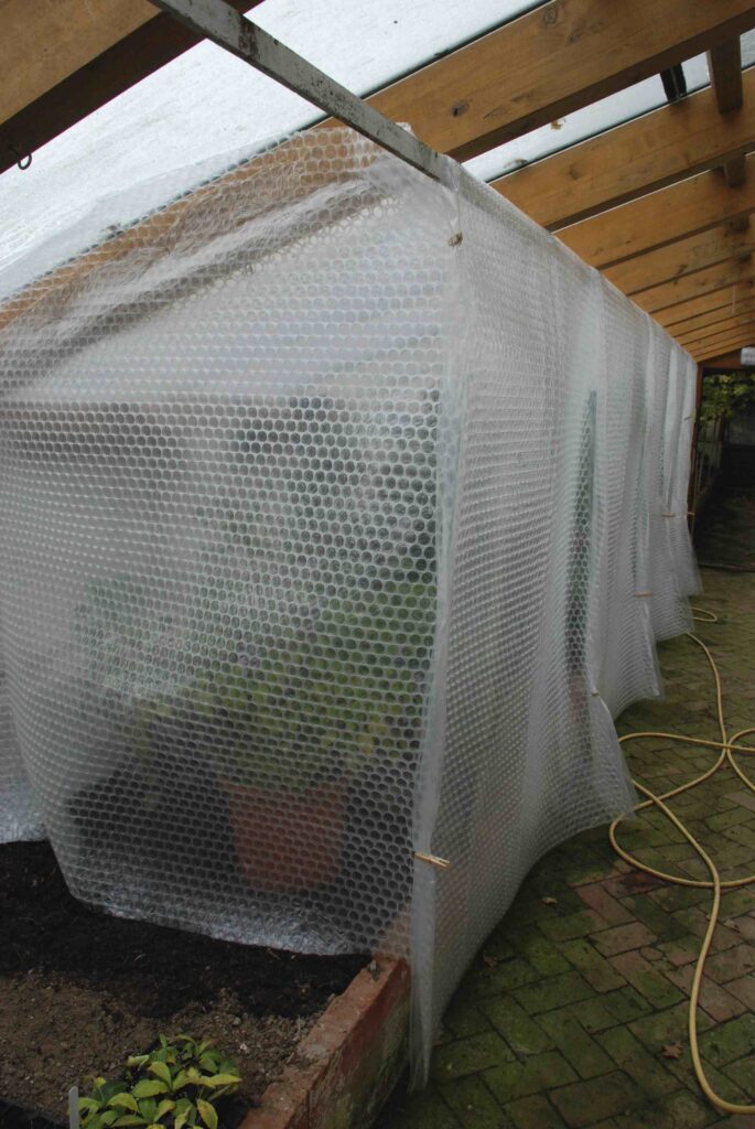 Some of our favourite plants are tender and need protection from severe cold. These might include pots of agapanthus, cannas, pelargoniums and fuchsias. Heating a greenhouse can be expensive and I certainly do not heat the whole space. Instead insulate the roof with bubble plastic and I section-off part that I heat to keep energy costs to a minimum. I have a small, plastic greenhouse inside my greenhouse and heat that area. You can protect lots of plants by keeping them fairly dry (not completely dry), keeping them in the greenhouse and covering them with loose bubble plastic or newspaper on frosty nights, removing it when temperatures rise.