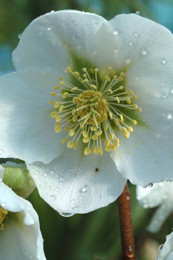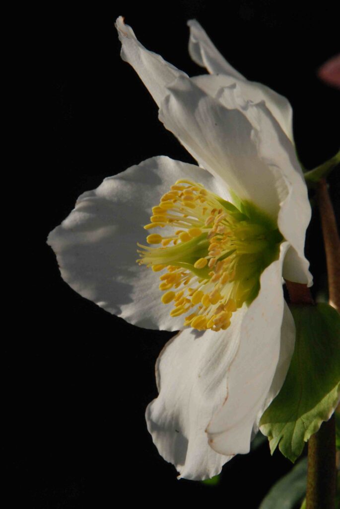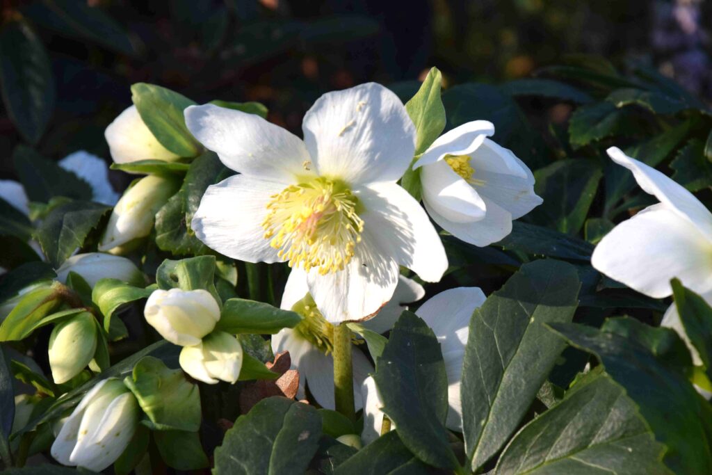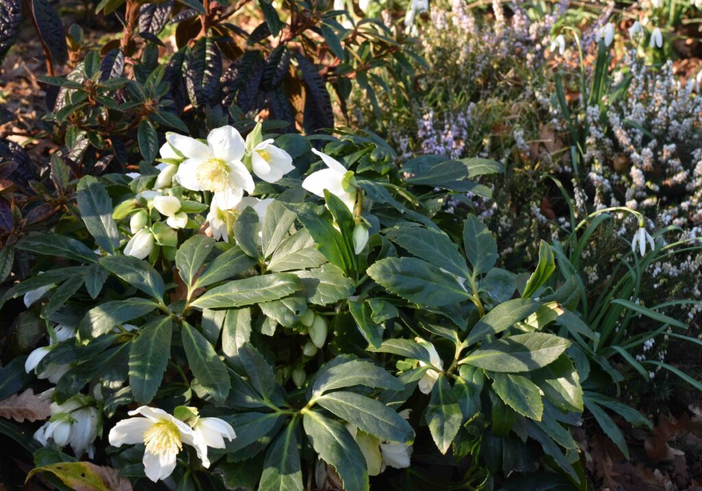 Helleborus niger is called the ‘black’ hellebore because of the colour of the roots, not the flowers. ‘Hellebore’ means ‘poisonous food’ and like all hellebores, is poisonous when eaten. This led to its value to old herbalists who used it for various purposes. Gerard wrote that ‘A purgation of Hellebor is good for mad and furious men’. (Note that he seems to have confused what we know as hellebores and veratrum – unrelated plants also called hellebores)