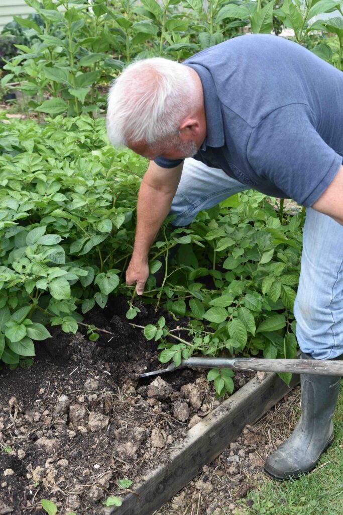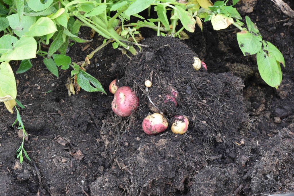The biggest problem with potatoes is ‘early blight’ which kills the foliage and can ruin the tubers. It tends to strike in stormy weather in August. Early potatoes tend to be harvested before it strikes so they are easier for beginners.