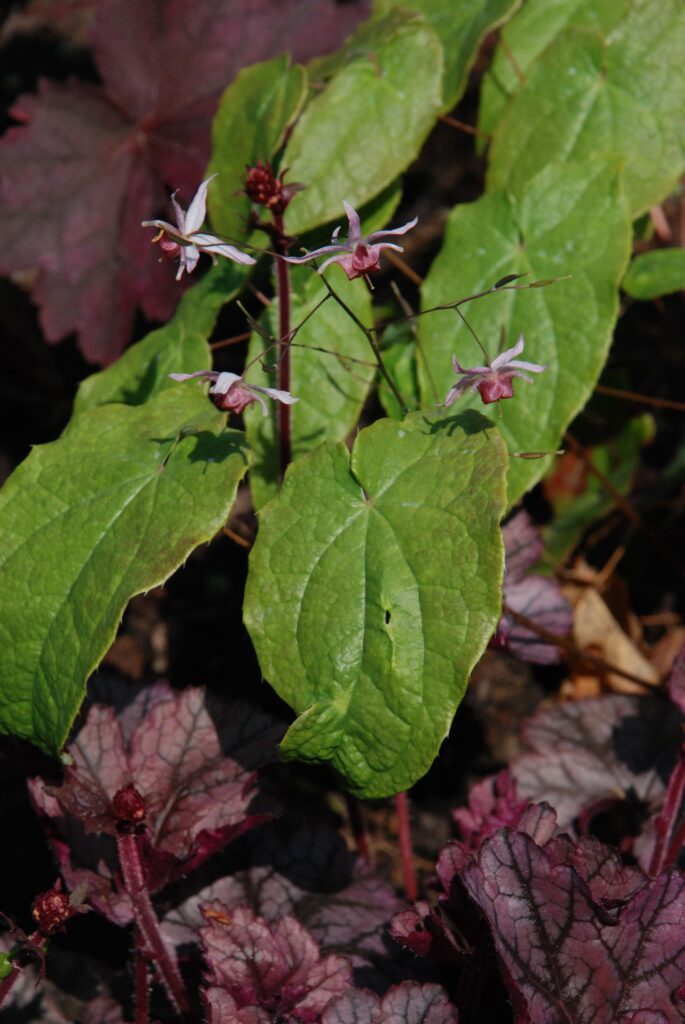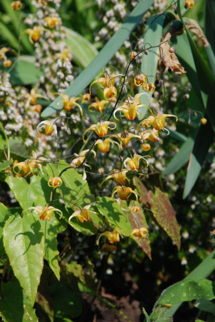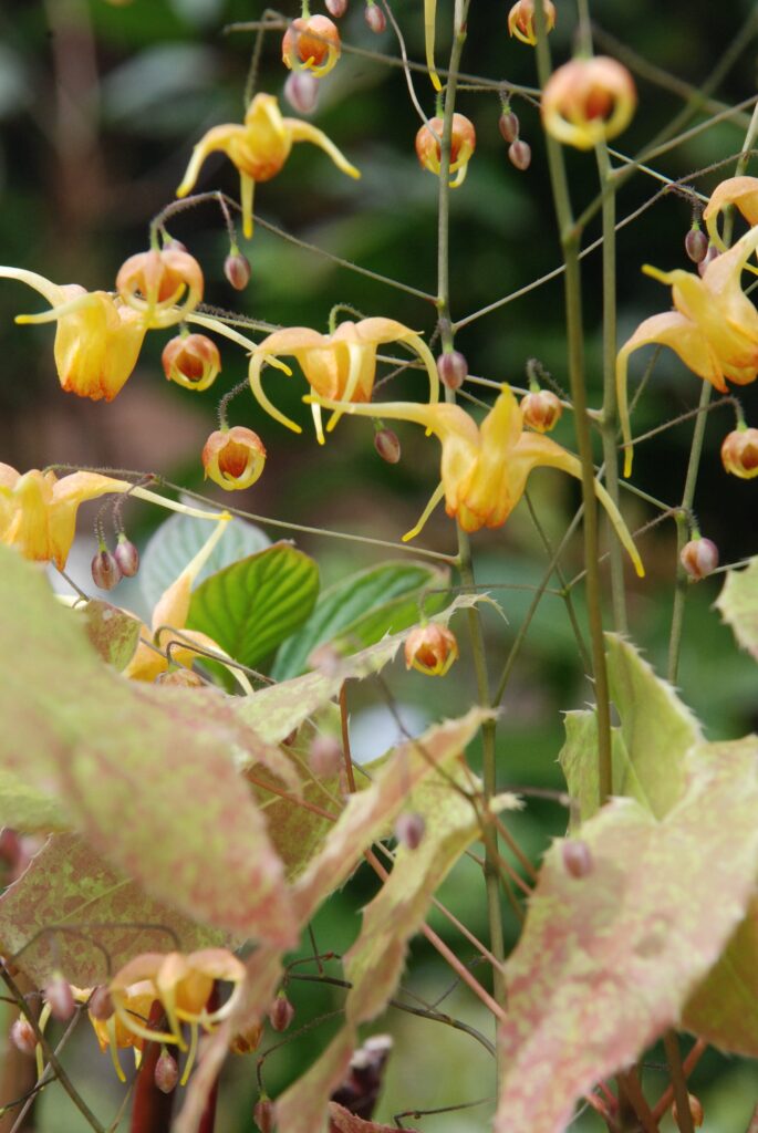 Epimediums have a variety of other names and the one I like most is the ‘unofficial’ happy medium. They are also known as barren-worts which seems strange, bishop’s hat or fairy wings because of the shape of the blooms. Epimedium grandiflorum is the source of the supplement ‘horny goat weed’ which needs little explanation.