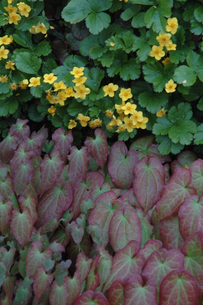 The most common and easiest types are of European origin and include the yellow-flowered E. perralderianum and E. x perralchicum. These are tough plants that will grow in the dry shade of trees and are great ground cover. Epimedium grandiflorum is a Japanese species that is more delicate and forms small clumps but with showy, pink, cherry red or white flowers. It deserves a good position in light shade and soil that is enhanced with organic matter.