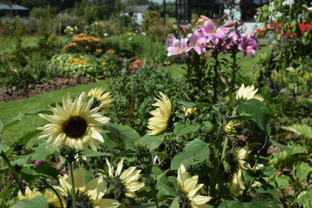 And while we all love golden sunflowers, there are many other colours to choose from. You can now get seeds of sunflowers in every shade of yellow and also reds and pinks and almost black. I did grow ‘black’ sunflowers a few years ago and while I like the various different kinds, I longed for bright, golden sunflowers instead, though the bees seemed just as happy with the dark flowers.